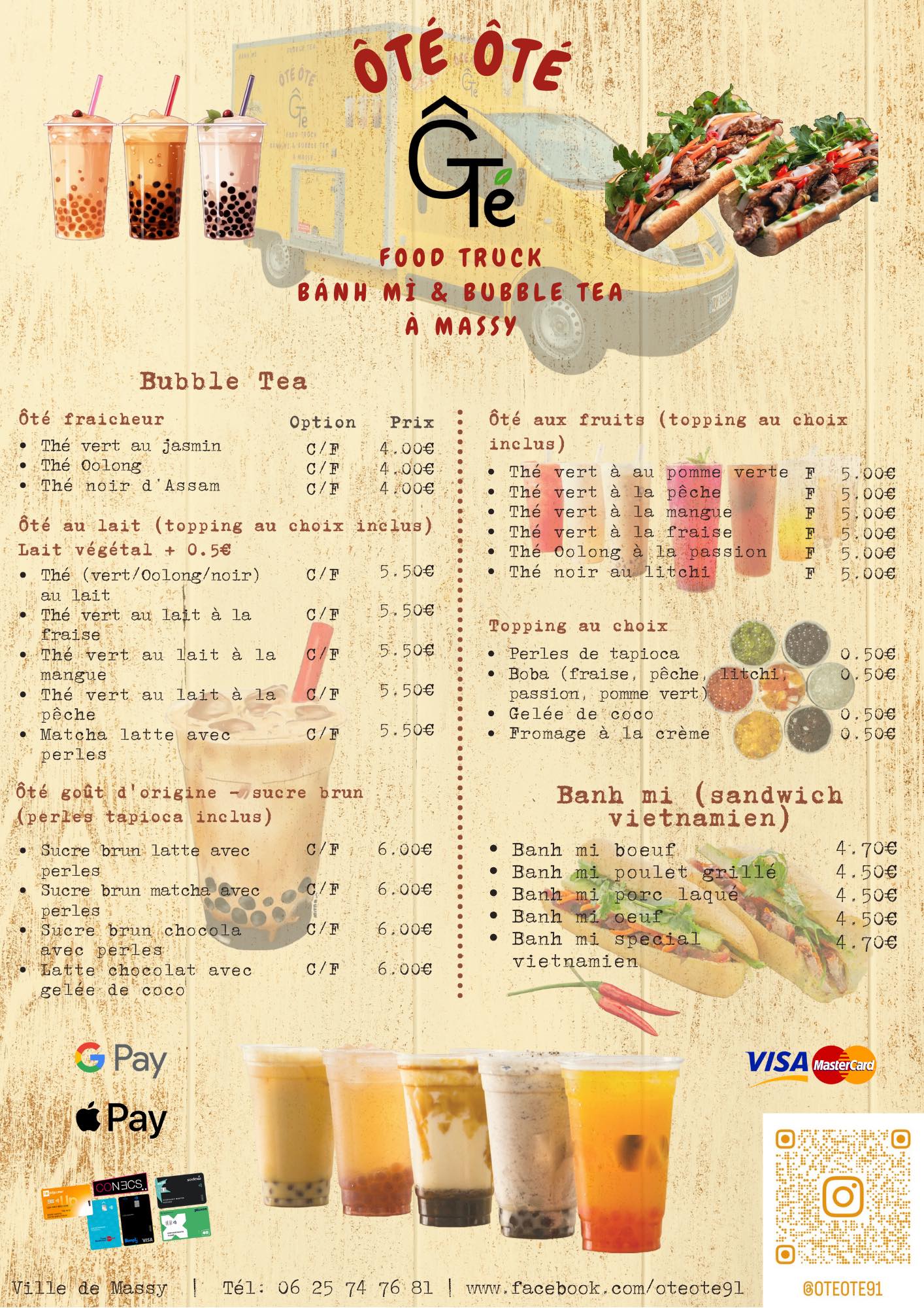 Foodtruck Ôté Ôté : une délicieuse sélection de Banh mi, sandwichs vietnamiens garnis de viandes savoureuses, de légumes frais et de sauces exquises, le tout dans une baguette croustillante. consulter le menu (banh mi uniquement)